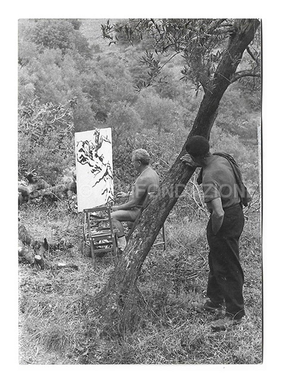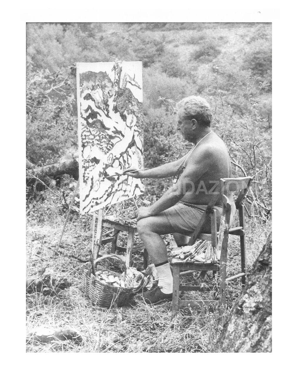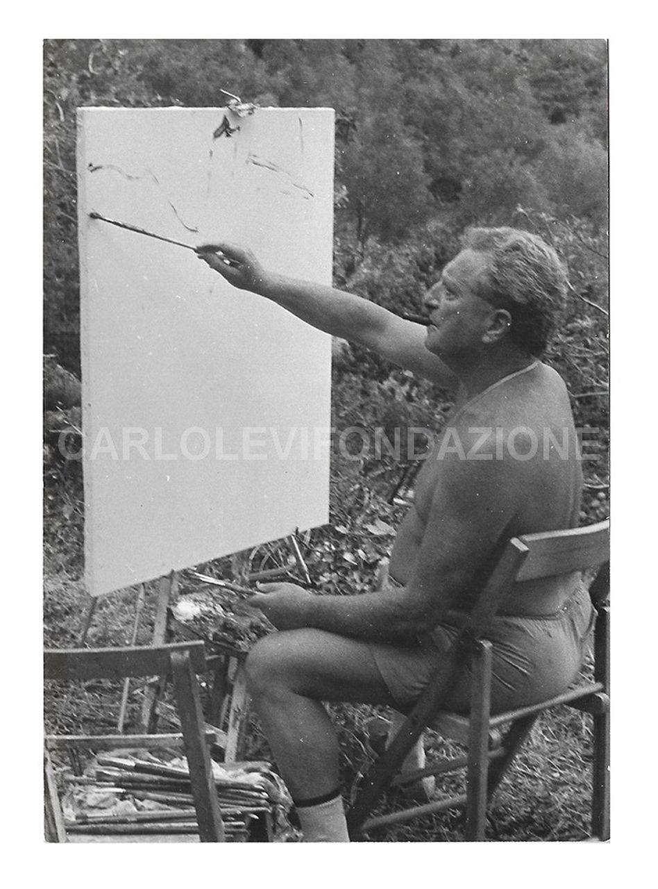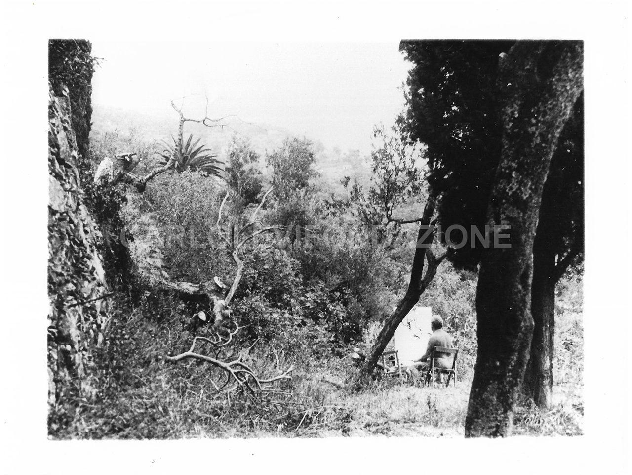 soggetto Carlo Levi dipinge nella campagna di Alassio nel 1965 circa