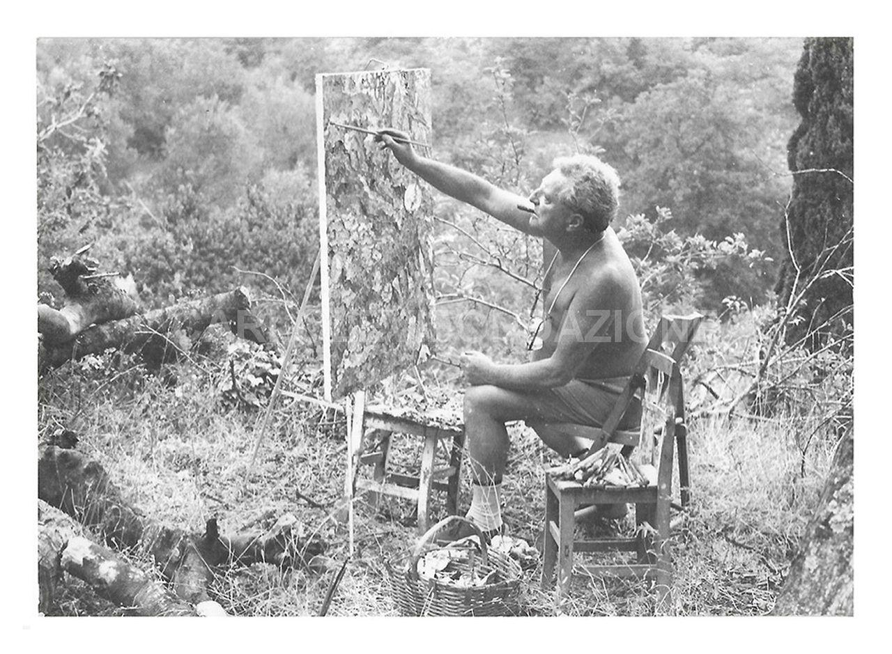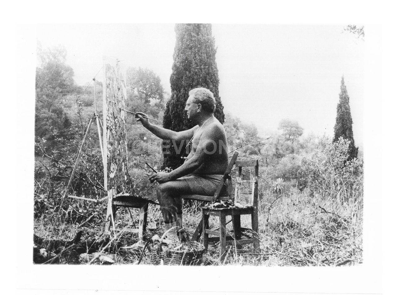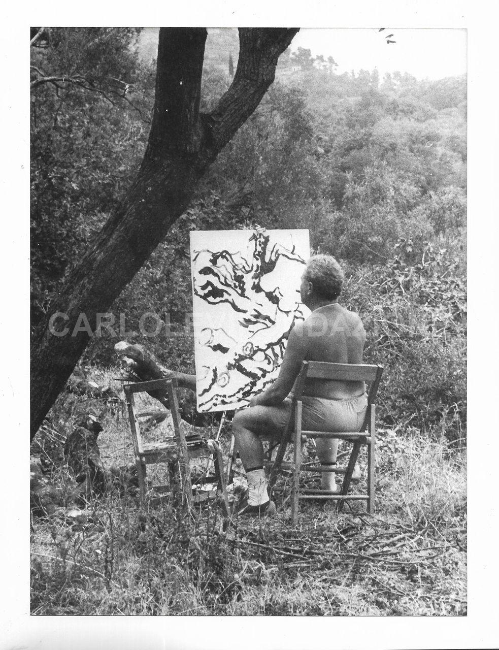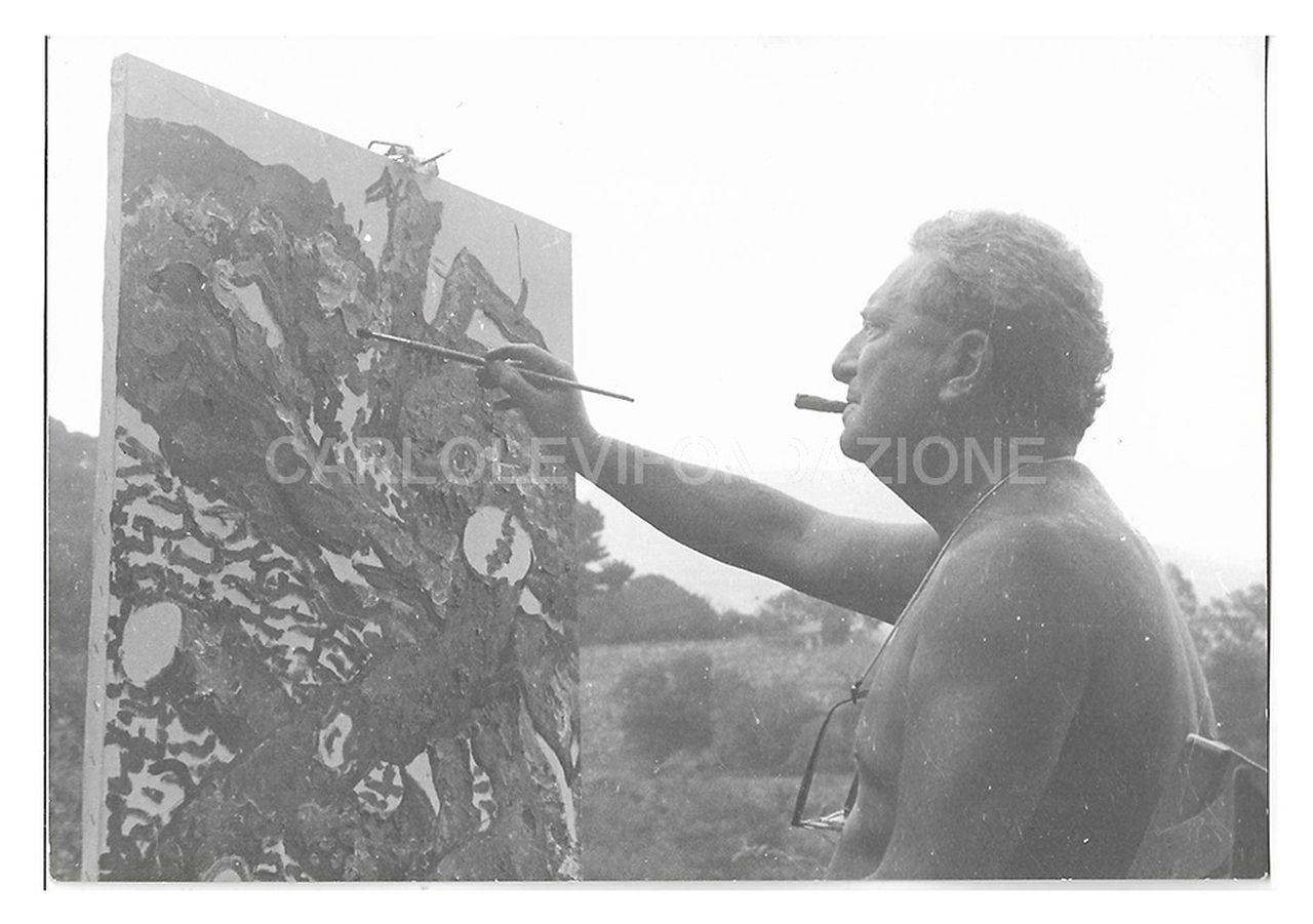 soggetto Carlo Levi dipinge nella campagna di Alassio nel 1965 circa