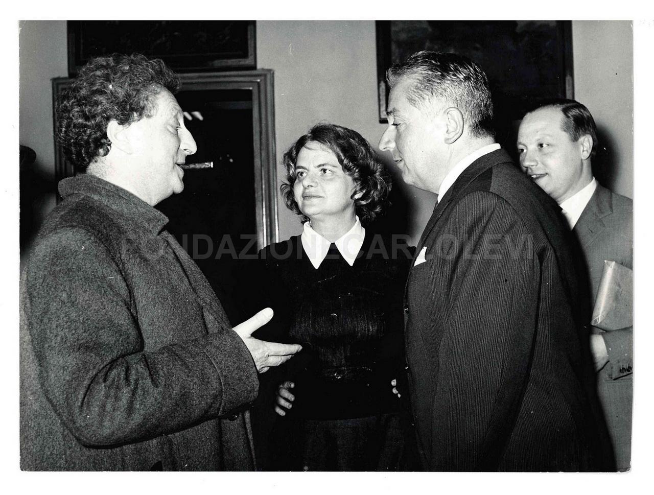 Levi con Elsa Morante, Cesare Brandi e Giovanni Carandente