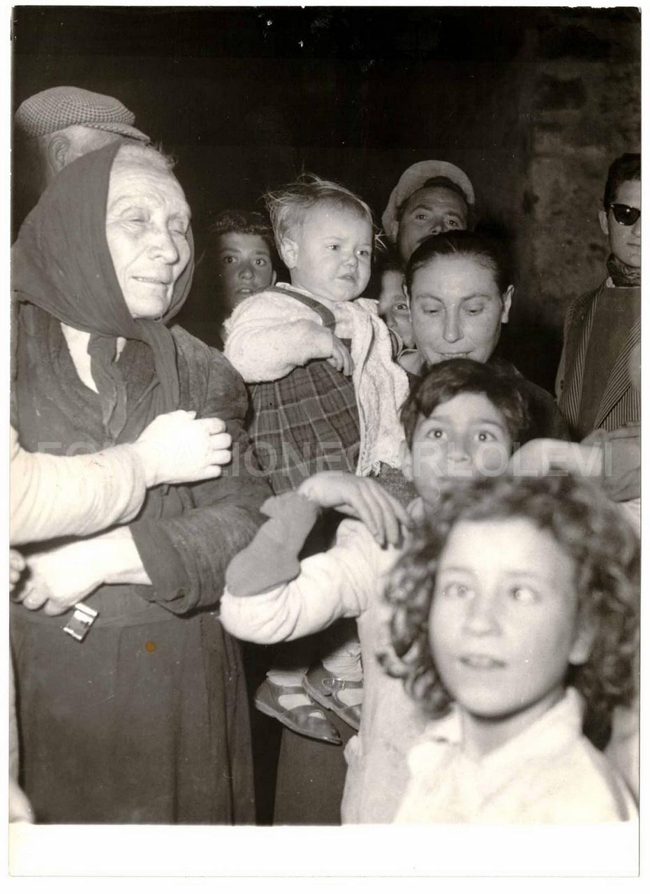 soggetto Etichetta sul retro: "I BRACCIANTI PESCATORI DI PARTINICO HANNO INIZIATO LO SCIOPERO DELLA FAME. Palermo 31/01/1956. Una manifestazione drammatica e silenziosa è iniziata quest'oggi nel "triangolo dei banditi" da mille tra braccianti e pescatori disoccupati di Partinico, Balestrate e Trappeto. Guidati dallo scrittore Danilo Dolci dall'alba di questa mattina i mille disoccupati hanno iniziato lo sciopero della fame come protesta contro il disinteresse delle autorità regionali e centrali."