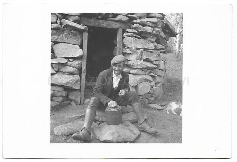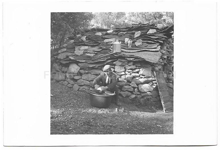soggetto Un pastore davanti al suo ovile in pietra e sughero nei pressi di Orune
