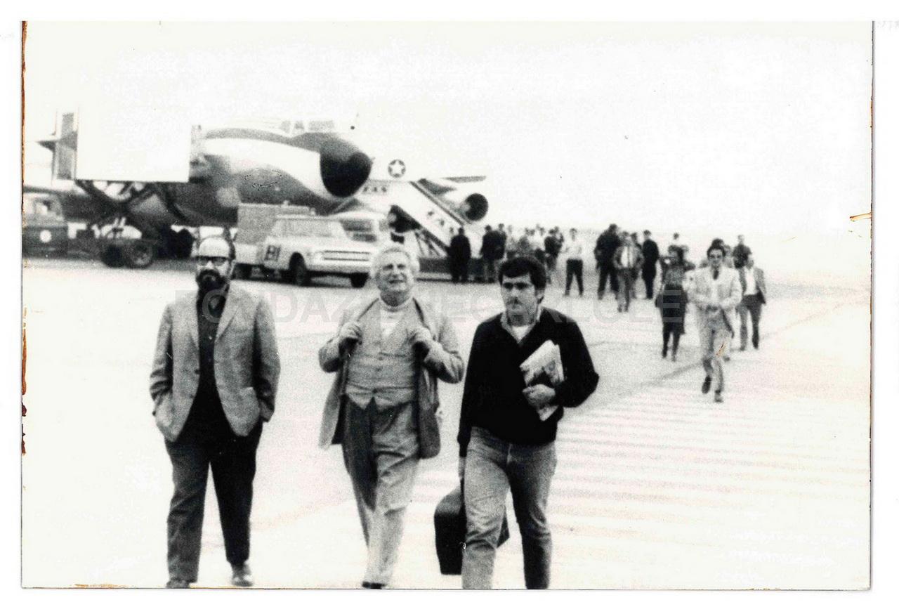 Carlo Levi sulla pista di atterraggio con altre persone