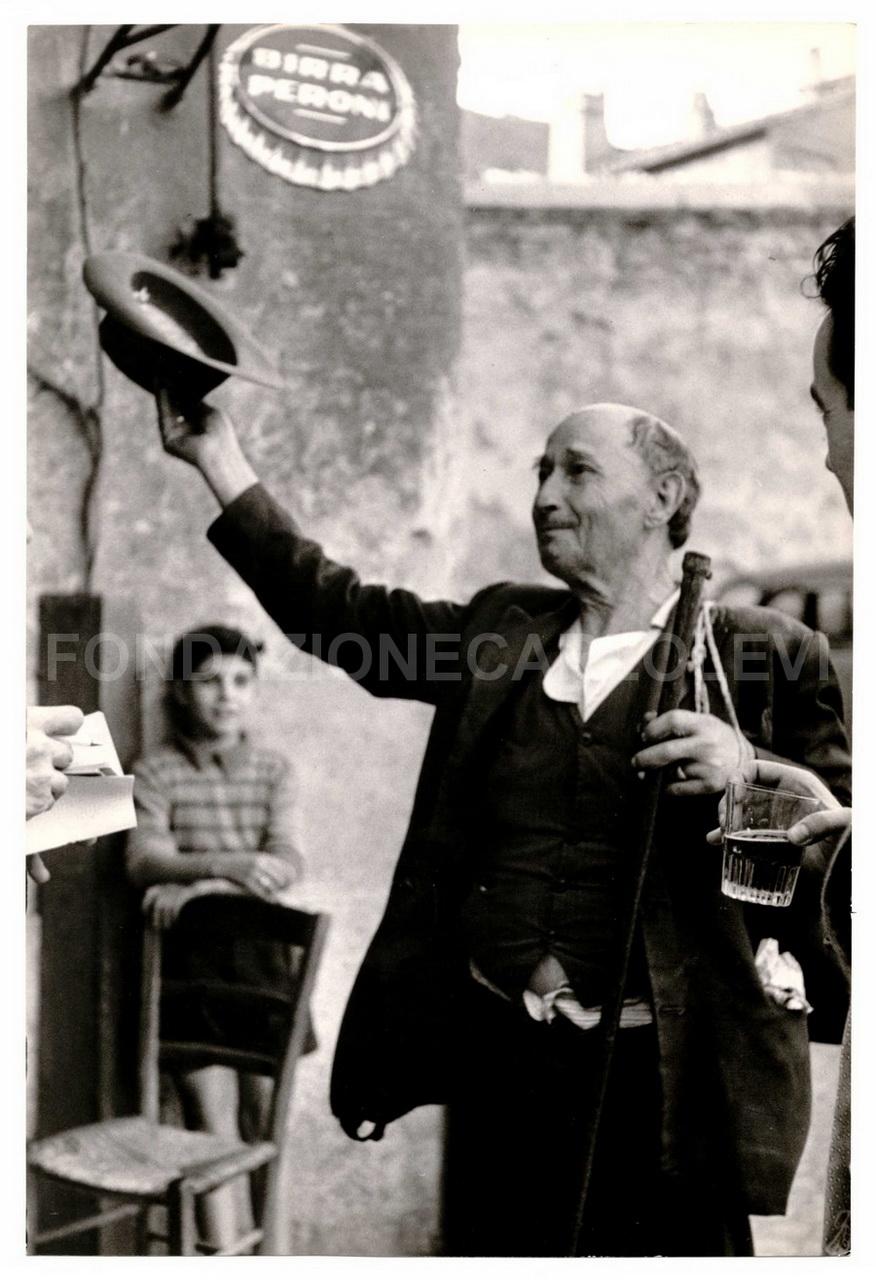 soggetto Vagabondo che in assenza di Bicchierino intrattiene il pubblico lo scarso pubblico fuori la trattoria