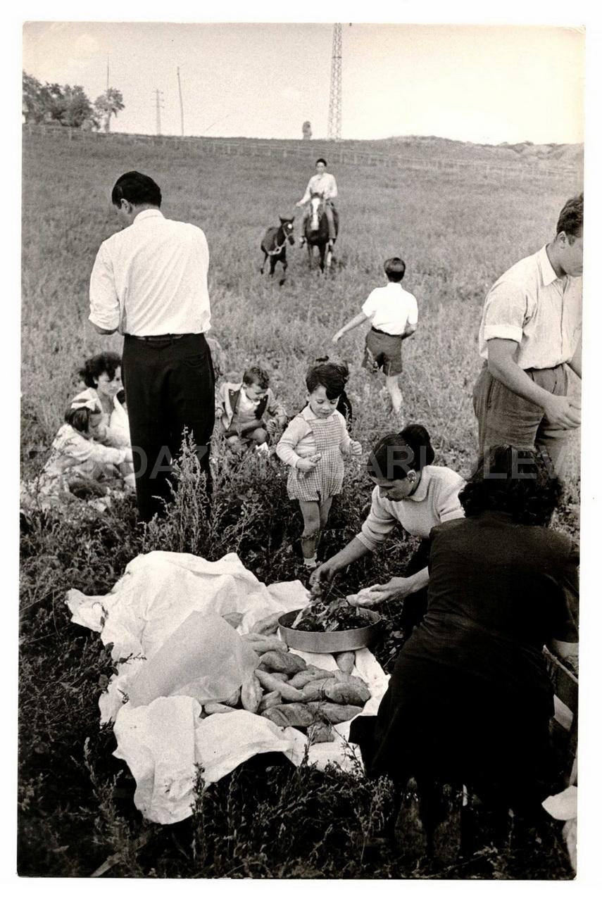 soggetto Bicchierino e sua madre pascolano mentre gli abitanti della Piazza fanno un picnic