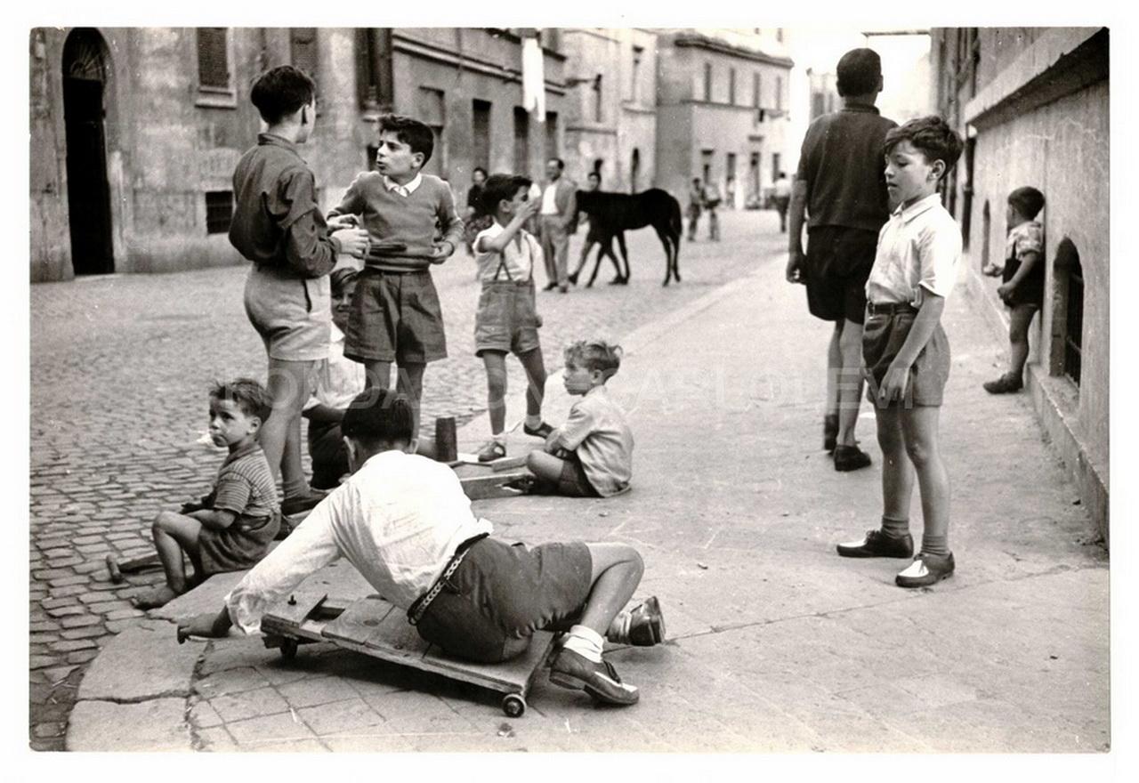 soggetto Gruppo di ragazzi gioca per strada mentre in secondo piano si intravede Bicchierino