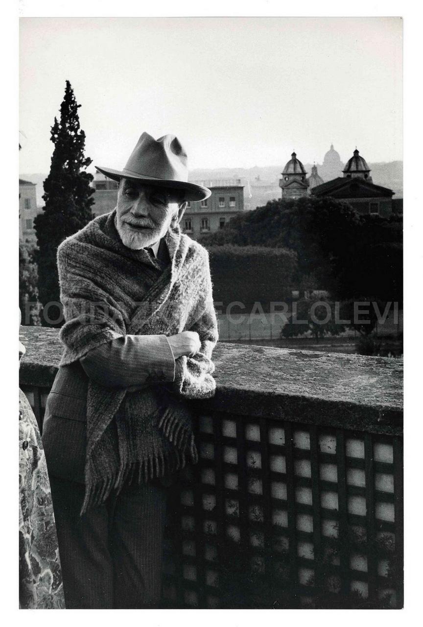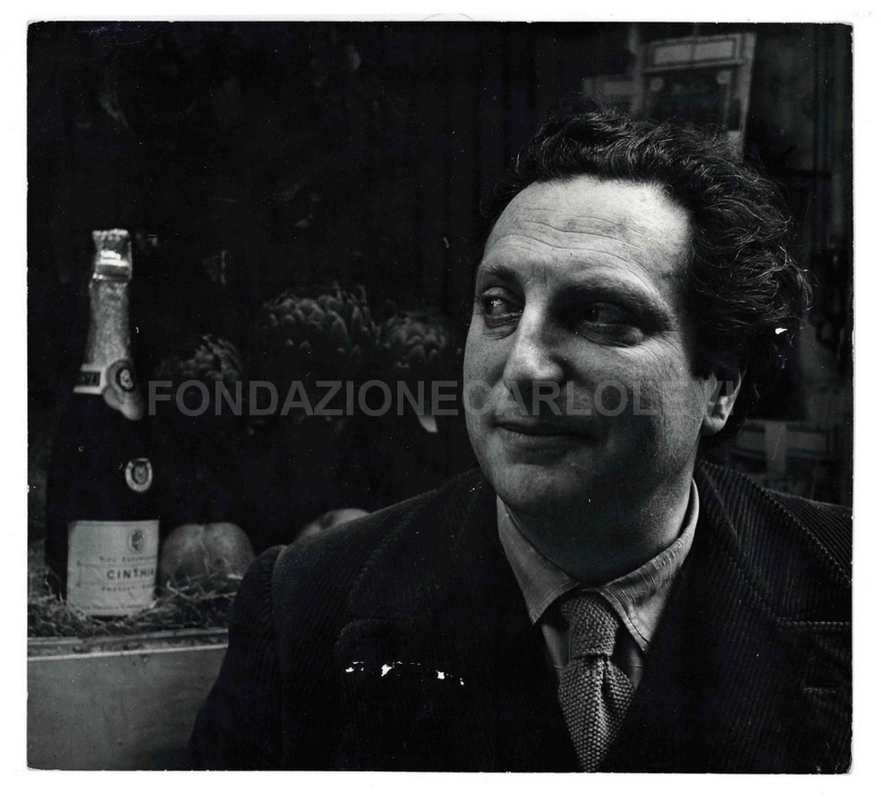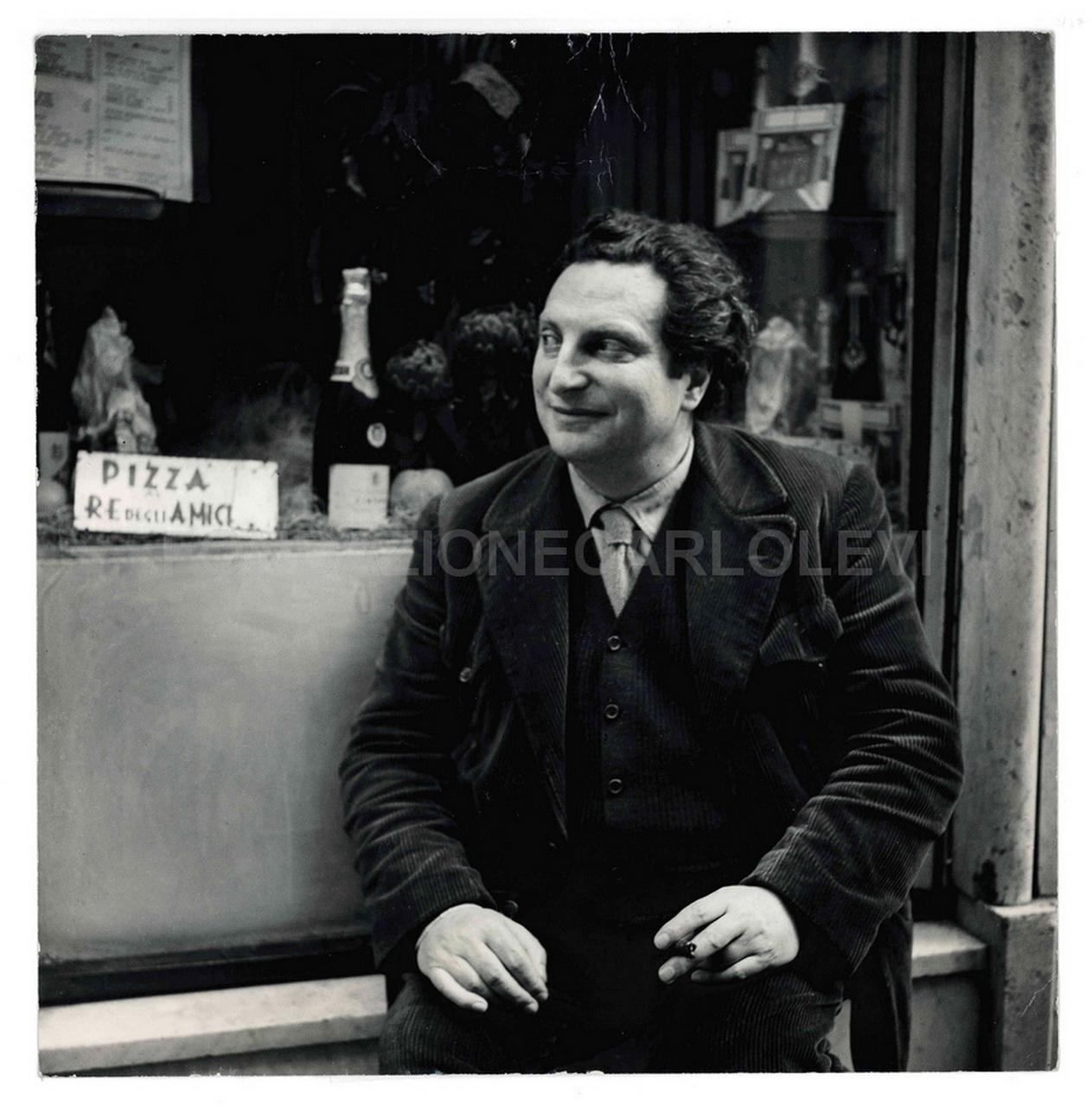 soggetto Carlo Levi a Roma di fronte ad un ristorante nel 1948