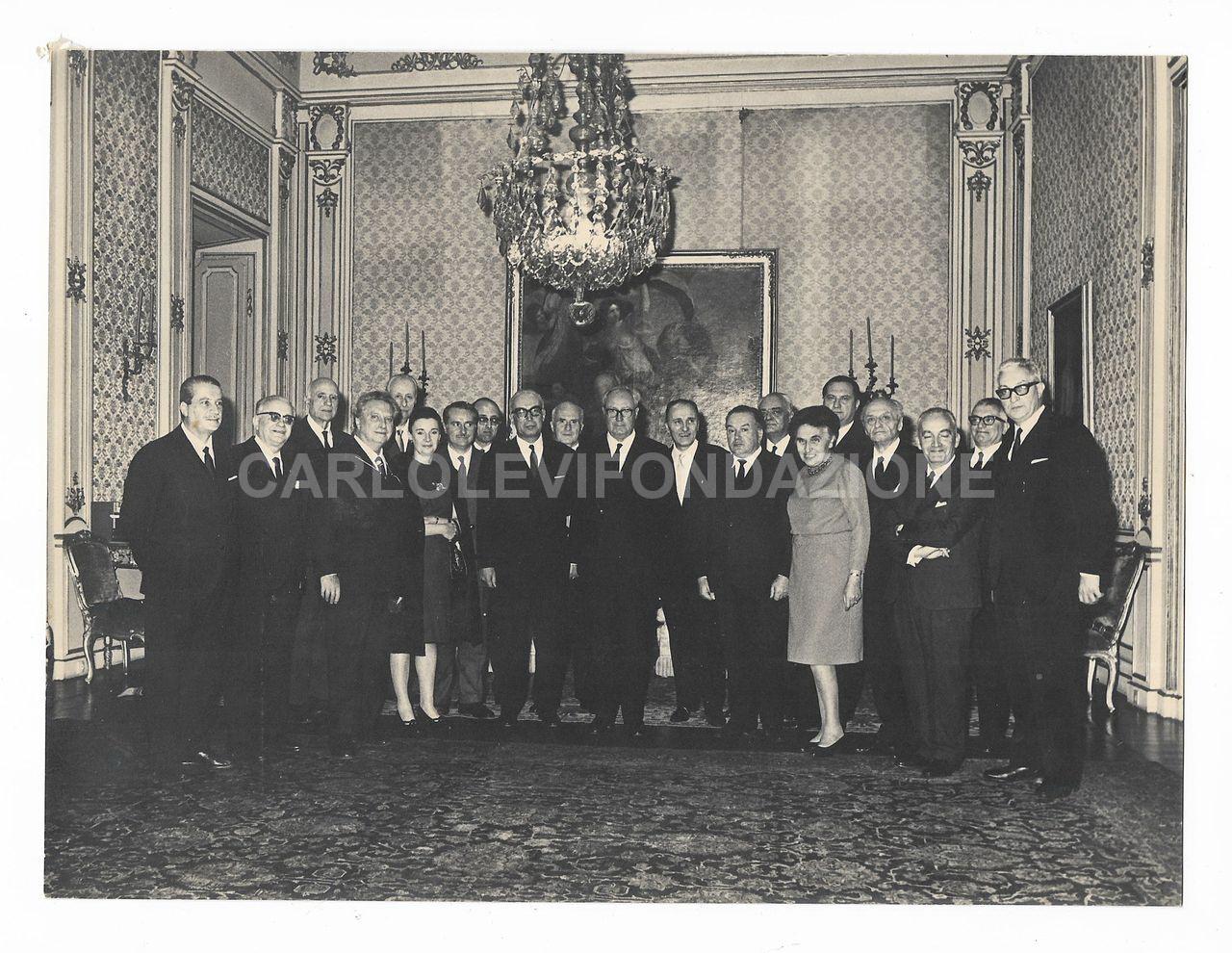 Presidente della Repubblica Saragat, Ministro dell'Istruzione Gui e altre persone tra cui Carlo Levi al Quirinale