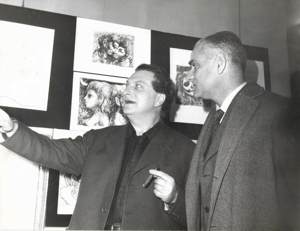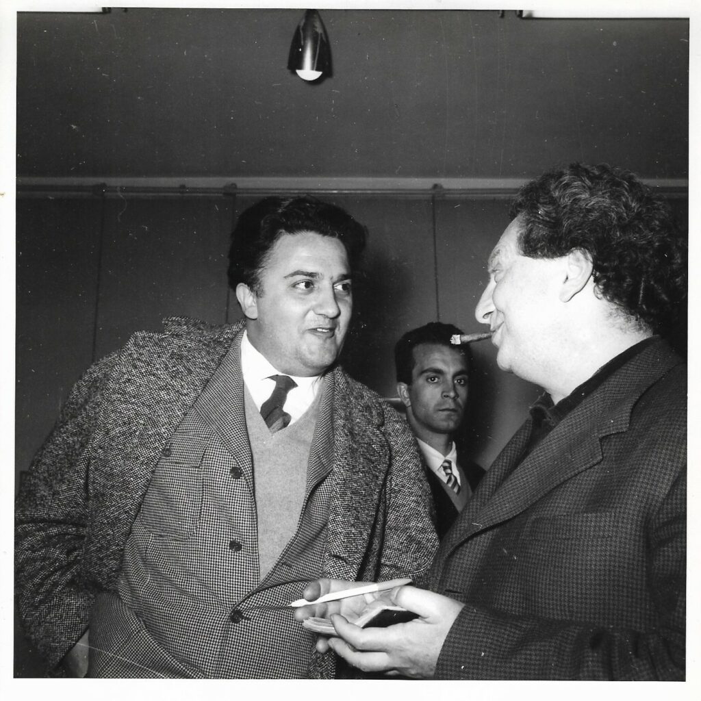 Levi con Federico Fellini durante l’inaugurazione della mostra