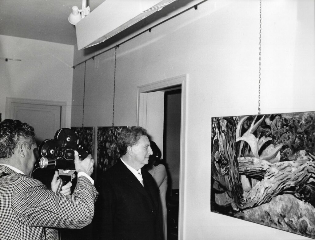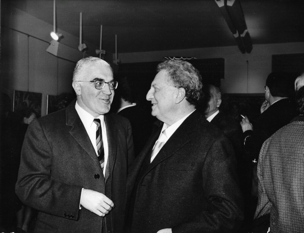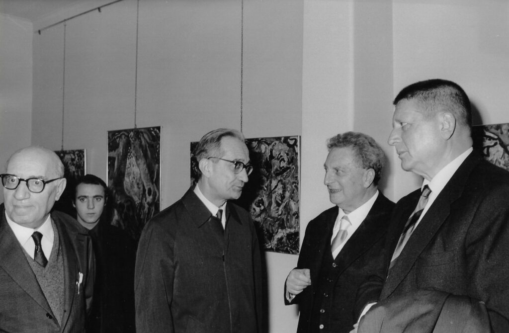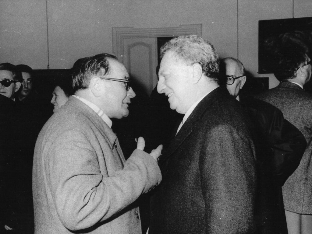 Lo storico dell’arte Argan e il senatore Amendola conversano con l’artista